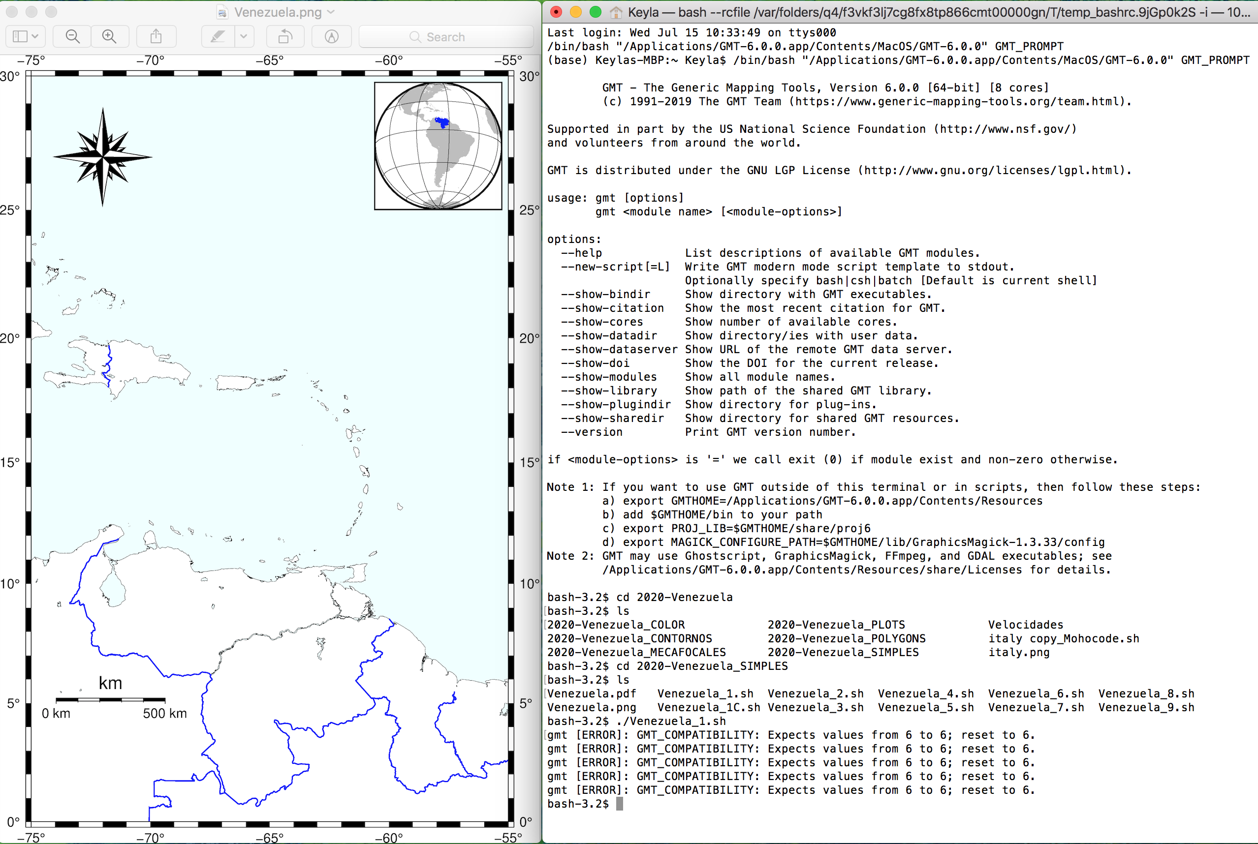 So if you look at your first screen shot with the error message, it says βUnrecognized graphics format Venezuelaβ. When I copied your script from your most recent post it ran. So for whatever reasons the gmt begin command gets confused about the session name and the graphics formats. Please type