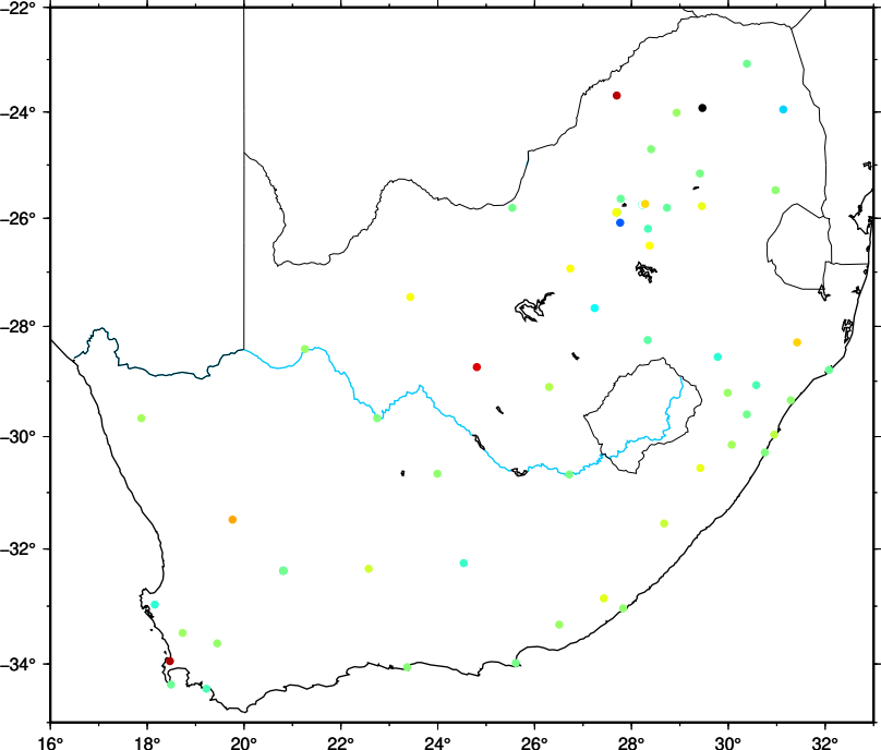 gmt pscoast -R16/33/-35/-22 -JM20c -BWSne -Baf -I1/1p,0/200/251 -W1,black -Gwhite -Di -N2/0.25p,black -Na/0.5,black -Swhite > SA.ps