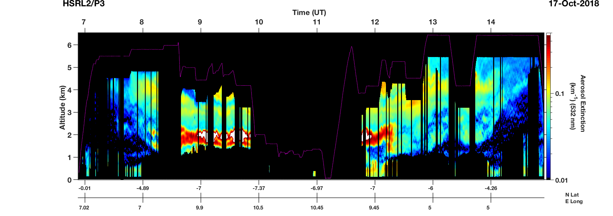 I want to plot longitude and latitude on two x-axes, height on the y-axis, and the parameter value as a colormap. In general, I was providing (lat/lon, height, parameter) as an input. For the case of two x-axes, I tried to provide (lat, lon, height, parameter) with primary and secondary x-axes with -B option.